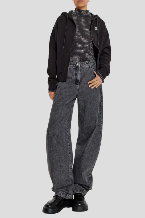 Детали: Женская черная спортивная кофта Dalfine из хлопка от Hugo by Hugo Boss (Хуго бай Хуго Босс). Застежка на молнию, вшитый капюшон с кулиской, логотип бренда на груди, два кармана, манжеты и низ изделия в рубчик