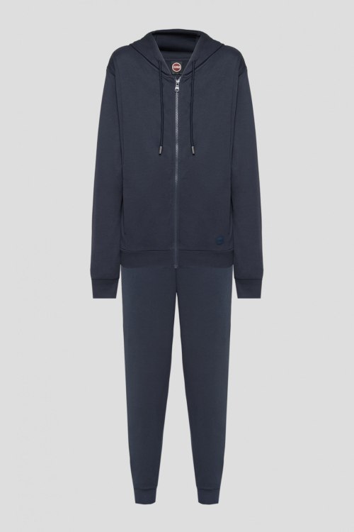 Детали: Женский темно-синий спортивный костюм из хлопка от Colmar (Колмар). Спортивная кофта на молнии, вшитый капюшон с кулиской, трикотажная резинка на манжетах и по низу изделия, спортивные брюки с манжетами, эластичная резинка на поясе с кулиской, прорезные карманы. Замеры: длина рукава: длинный, для размера M - 65 см, обхват груди: для размера M - 106 см, обхват талии: для размера M - 100 см, длина изделия по среднему шву спинки от горловины: для размера M - 58 см. Брюки: обхват пояса: для размера M - 78 см, обхват бедер: для размера M - 102 см, длина штанины: для размера M - 105 см, длина по шаговому шву: для размера M - 72 см
