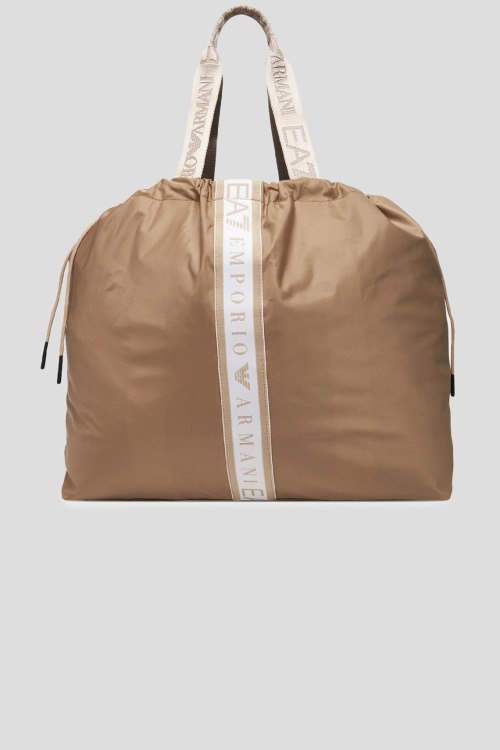 Детали: Женская бежевая текстильная спортивная сумка от EA7 Emporio Armani (ЕА7 Эмпорио Армани). Нашивка с логотипом, две брендированные ручки, верх на затяжке, одно отделение. Размеры: 42 x 46 x 18.5 см
