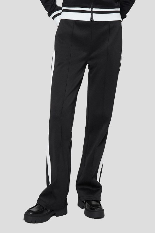 Детали: Женские черные спортивные брюки от Hugo by Hugo Boss (Хуго бай Хуго Босс). Эластичный пояс, белые лампасы, боковые карманы, низ без манжетов, полная длина