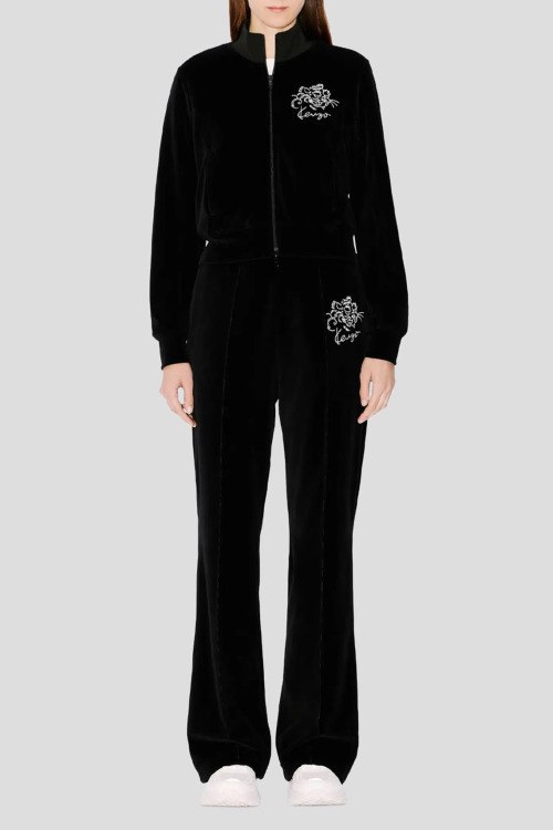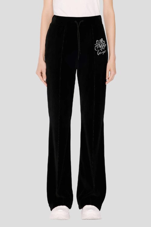 Детали: Женские черные велюровые спортивные брюки Star Tiger от Kenzo (Кензо). Эластичный пояс на завязках, вышитый логотип, боковые карманы, низ без манжетов, полная длина