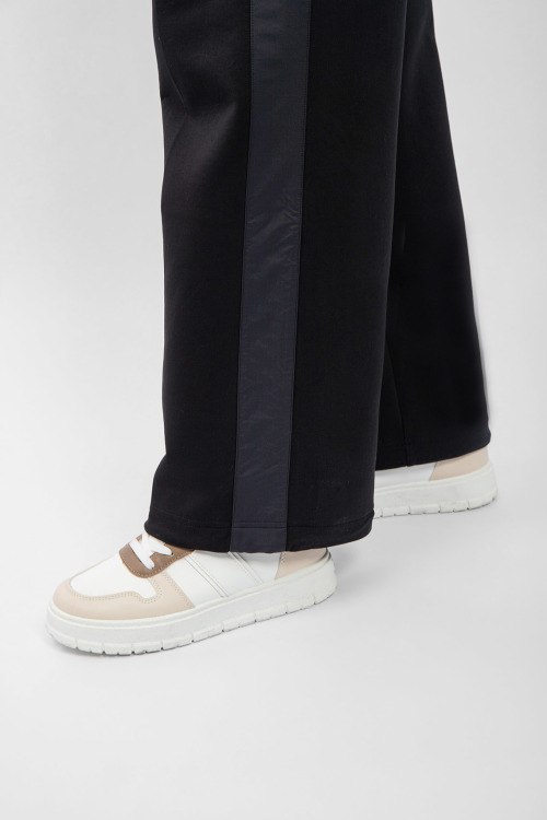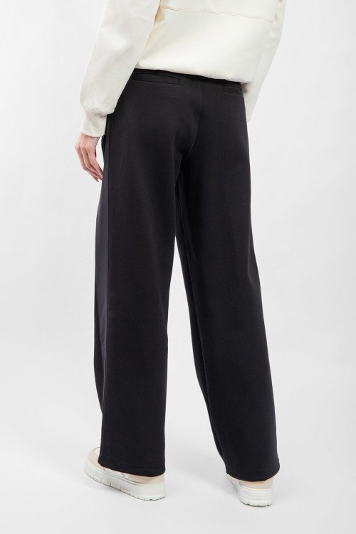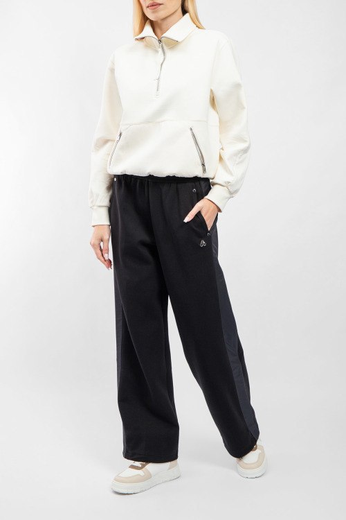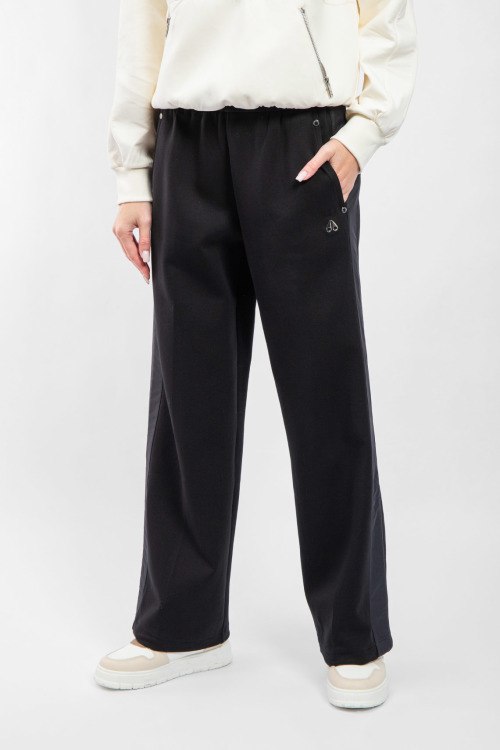 Женские черные хлопковые спортивные брюки от Moose Knuckles (Мус Наклс). Эластичный пояс, боковые карманы, нашивка с логотипом, лампасы, низ без манжетов, полная длина.