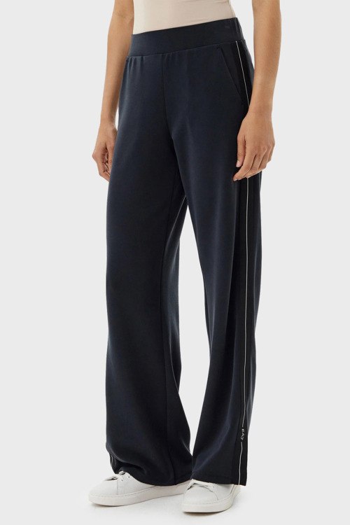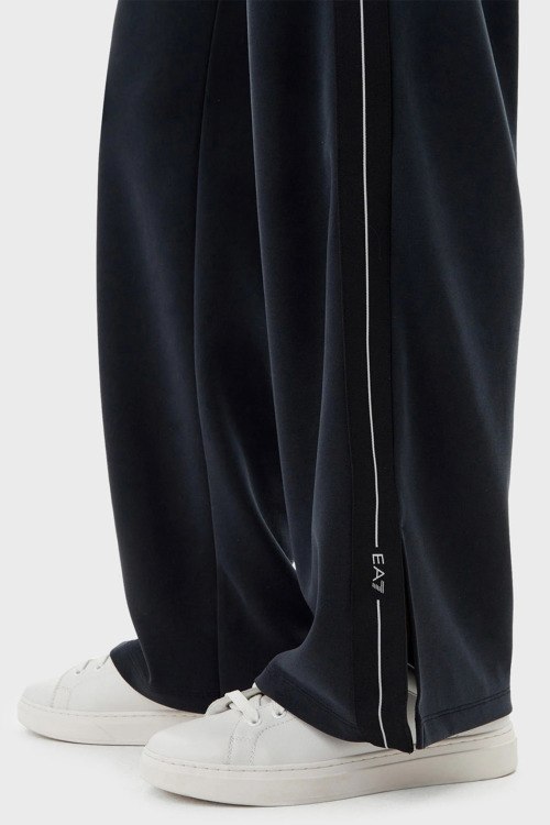 Детали: Женские темно-серые спортивные брюки от EA7 Emporio Armani (ЕА7 Эмпорио Армани). Эластичный пояс, боковые карманы, разрезы по бокам, полная длина