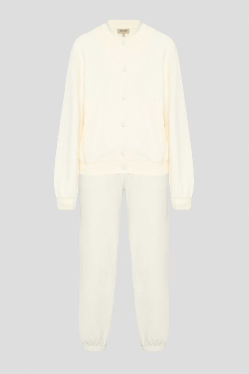 Детали: Женский белый спортивный костюм из хлопка от Woolrich (Вулрич). Кофта-бомбер на кнопки, длинные рукава, трикотажная резинка на манжетах и по низу изделия, вышитый логотип бренда, прорезные карманы. Брюки классической длины с манжетами, эластичный пояс с кулиской. Замеры: длина рукава: длинный, для размера S – 60 см, обхват груди: для размера S – 106 см, обхват талии: для размера S – 106 см, длина изделия по среднему шву спинки от горловины: для размера S – 57 см. Брюки: обхват пояса: для размера S – 74 см, обхват бедер: для размера S – 112 см, длина штанины: для размера S – 97,5 см, длина по шаговому шву: для размера S – 69,5 см.