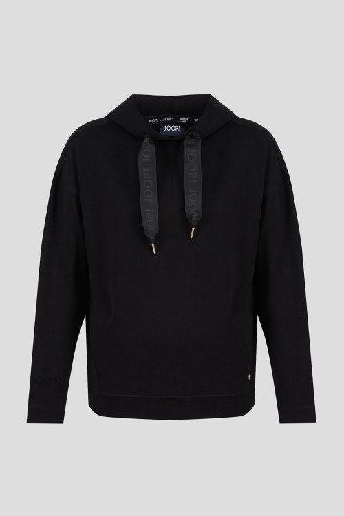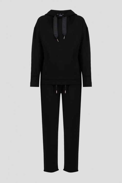 Детали: Женский черный спортивный костюм из хлопка от Joop! (Йооп!). Худи свободного кроя, вшитый капюшон, классическая длина, брендированная кулиска, карман-кенгуру. Брюки с эластичной резинкой на поясе, прорезные карманы. Замеры: длина рукава: длинный, для размера 36 - 49 см, обхват груди: для размера 36 - 108 см, обхват талии: для размера 36 - 100 см, длина изделия по среднему шву спинки от горловины: для размера 36 - 63 см. Брюки: обхват пояса: для размера 36 - 77 см, обхват бедер: для размера 36 - 100 см, длина штанины: для размера 36 - 98 см, длина по шаговому шву: для размера 36 - 72 см