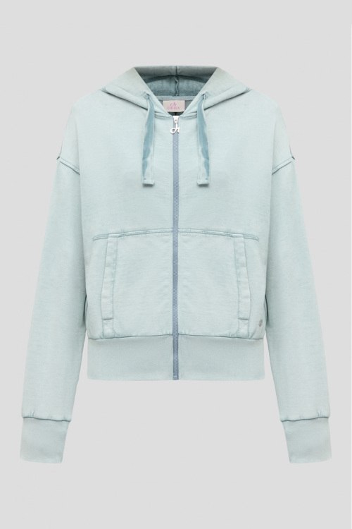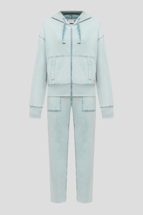 Детали: Женский бледно-голубой хлопковый спортивный костюм от Deha (Деха). Кофта: капюшон на завязках, боковые карманы, застежка-молния, классическая длина, трикотажные манжеты и нижний край. Длина рукава: длинный, для размера S - 56 см, обхват груди: для размера S - 104 см, обхват талии: для размера S - 80 см, длина изделия по среднему шву спинки от горловины: для размера S - 56 см. Брюки: эластичный пояс, боковые карманы, низ без манжетов, полная длина. Обхват пояса: для размера S - 62 см, обхват бедер: для размера S - 106 см, длина штанины: для размера S - 96 см, длина по шаговому шву: для размера S - 69 см