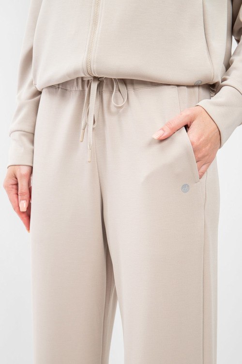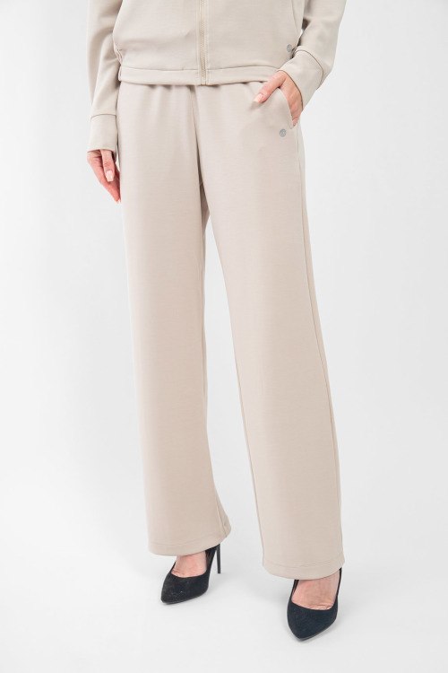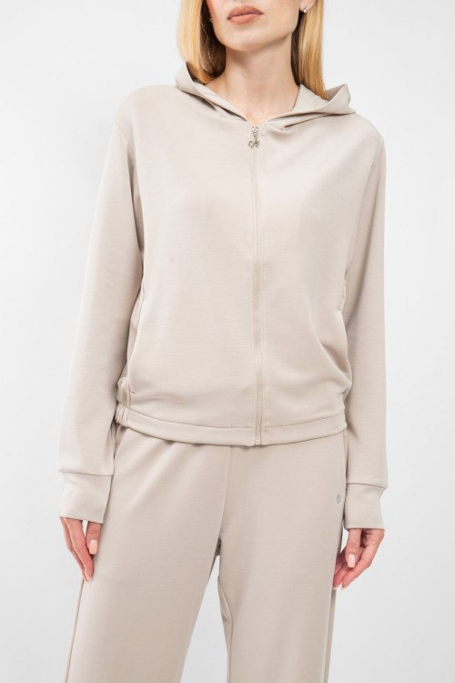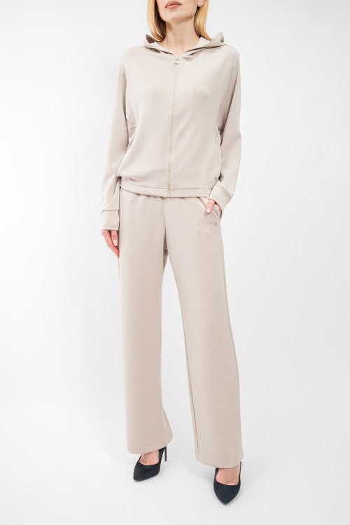 Женский спортивный костюм молочного оттенка от Deha (Деха). Кофта: вшитый капюшон, боковые карманы, застежка-молния, классическая длина. Брюки: эластичный пояс на завязках, боковые карманы, низ без манжетов, полная длина.