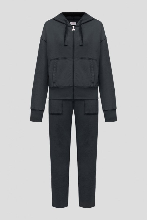 Детали: Женский темно-серый хлопковый спортивный костюм от Deha (Деха). Кофта: капюшон на завязках, боковые карманы, застежка-молния, классическая длина, трикотажные манжеты и нижний край. Длина рукава: длинный, для размера S - 56 см, обхват груди: для размера S - 104 см, обхват талии: для размера S - 80 см, длина изделия по среднему шву спинки от горловины: для размера S - 56 см. Брюки: эластичный пояс, боковые карманы, низ без манжетов, полная длина. Обхват пояса: для размера S - 62 см, обхват бедер: для размера S - 106 см, длина штанины: для размера S - 96 см, длина по шаговому шву: для размера S - 69 см