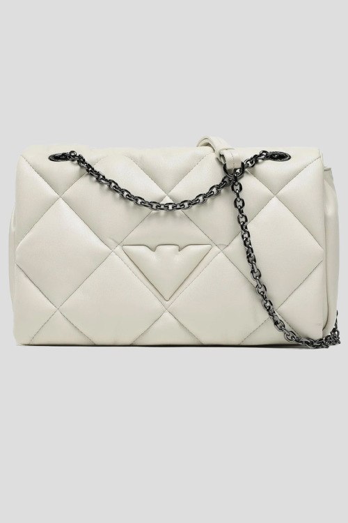 Детали: Женская белая сумка кросс-боди из экокожи от Emporio Armani (Эмпорио Армани). Стеганый дизайн, серебристая фурнитура, цепочка на плечо, застежка на магнит, одно отделение. Размеры: 29.5 x 18 x 9.5 см