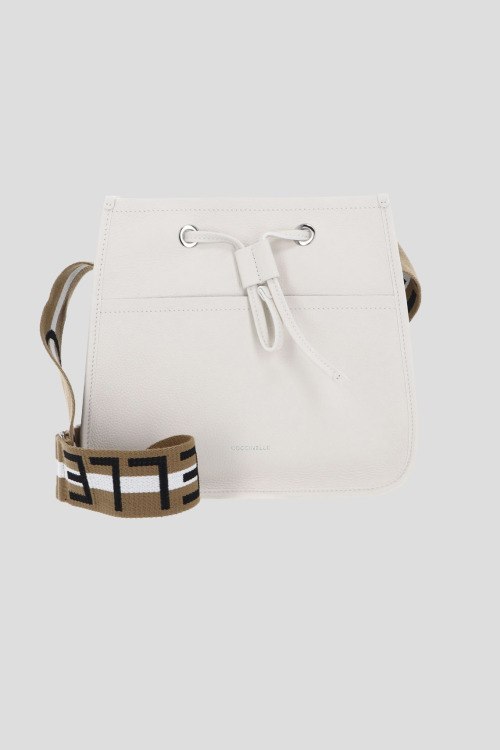 Детали: Женская белая сумка кросс-боди из натуральной кожи от Coccinelle (Кочинелле). Одно отделение, застежка-кулиска, текстильный плечевой ремень с логотипом бренда. Измерения: 25 x 23,5 x 9 см