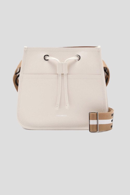 Детали: Женская белая сумка кросс-боди из натуральной кожи от Coccinelle (Кочинелле). Одно отделение, застежка на кулиску, брендированный плечевой ремень из текстиля. Размеры: ширина 25 см, высота 23,5 см, глубина 9 см.