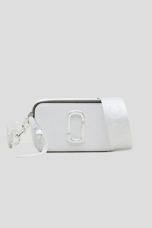 Детали: Женская белая кожаная сумка кросс-боди The Snapshot от Marc Jacobs (Марк Джейкобс). Модель из гладкой кожи, логотип спереди, серебристая фурнитура, брендированный плечевой ремень, застежка-молния, одно отделение. Размеры: 18 x 6 х 11 см