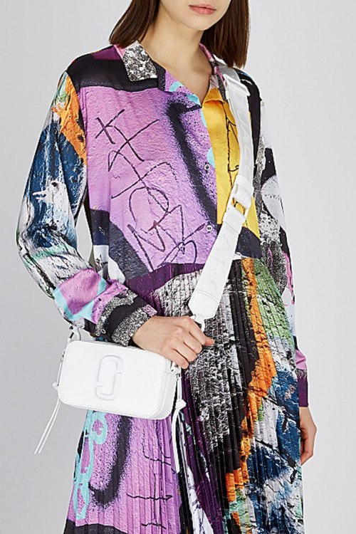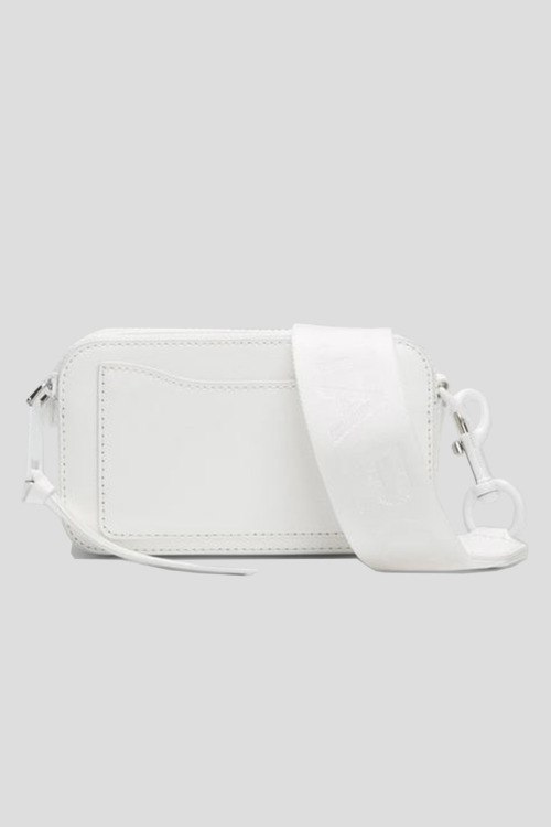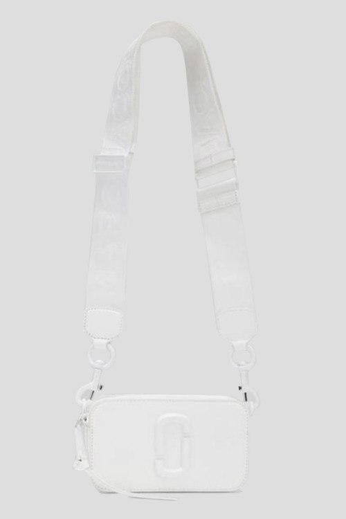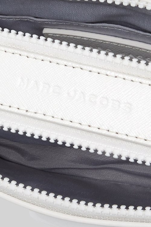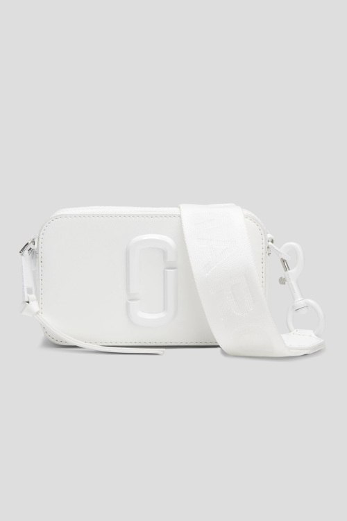 Женская белая сумка кросс-боди из сафьяновой кожи THE SNAPSHOT DTM от Marc Jacobs (Марк Джейкобс). Два отделения на молнии, съемный регулируемый по длине ремень, внутренний карман и внешний карман с обратной стороны, фурнитура серебристого цвета, металлический логотип бренда спереди. Измерения: 18 х 11 х 6 см