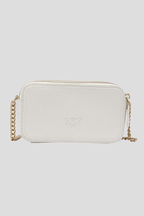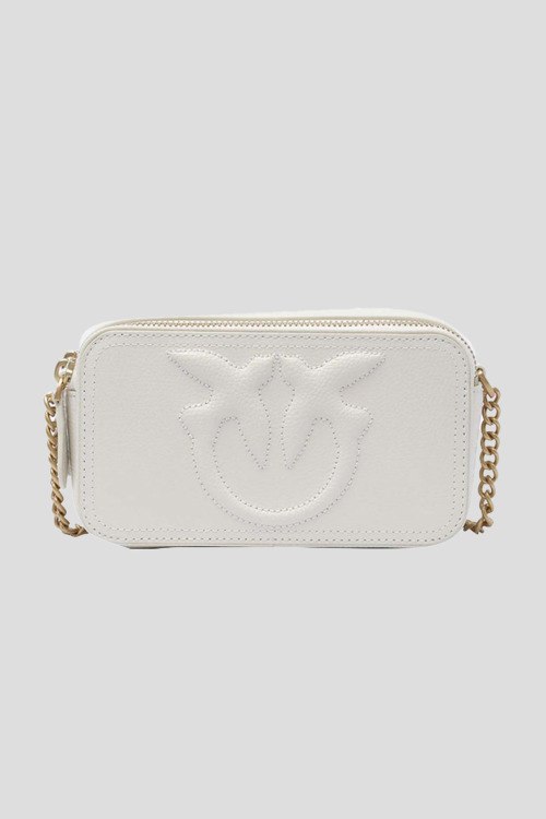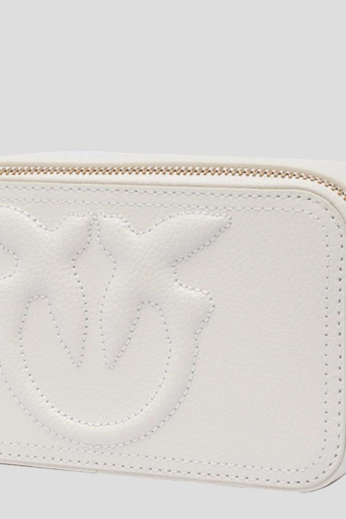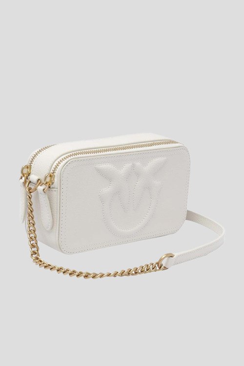 Детали: Женская белая кожаная сумка кросс-боди Tracolla Carrie от Pinko (Пинко). Модель из гладкой кожи, белая строчка, логотип Love Birds, золотистая фурнитура, застежка-молния, два отделения, цепочка на плечо. Размеры: ширина - 18 см, глубина - 6 см, высота - 10 см, плечевой ремень - 120/130 см