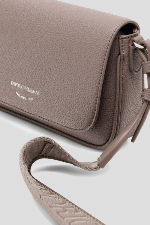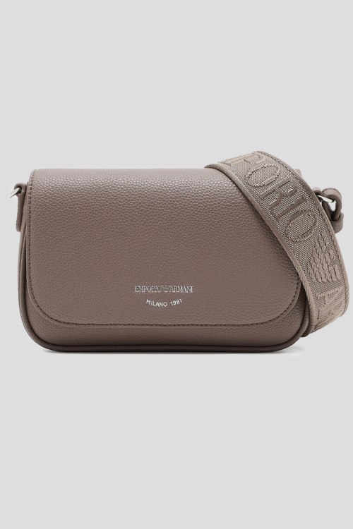 Детали: Женская бежевая сумка кросс-боди из экокожи от Emporio Armani (Эмпорио Армани). Одно отделение, застежка с клапаном на магнит, внутренний карман на молнии, тиснение с логотипом бренда, регулируемый печевой ремень. Раззмер: 19.5 x 12.5 x 4.5 см