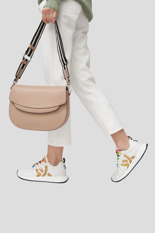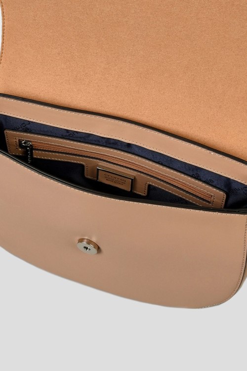Детали: Женская бежевая кожаная сумка кросс-боди от Cromia (Кромиа). Модель из гладкой кожи, значок с логотипом, застежка на магнит, одно отделение, регулируемый плечевой ремень. Размеры: высота: 19 см, ширина: 26 см, ширина по дну: 8 см