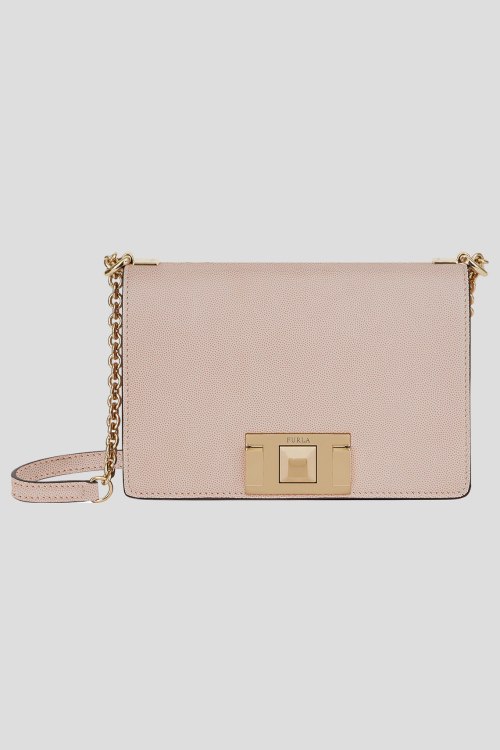 Детали: Женская пудровая кожаная сумка кросс-боди Mimi Mini от Furla (Фурла). Одно отделение, сзади дополнительное отделение, плечевой ремень-цепочка, фурнитура золотистого цвета, металлическая застежка. Размеры: 20 x 14 x 5.5 см