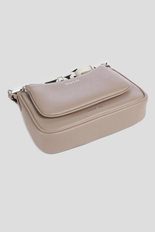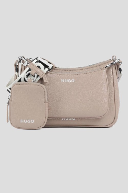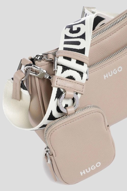 Детали: Женская бежевая сумка кросс-боди из экокожи Bel Multi Cross от Hugo by Hugo Boss (Хуго бай Хуго Босс). Модель из зернистой кожи, принт с логотипом, съемная маленькая сумочка и кошелек, серебристая фурнитура, застежка-молния, одно отделение, регулируемый брендированный плечевой ремень. Размеры: 23 x 15 x 6 см