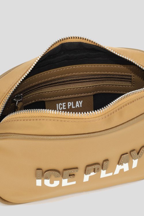 Детали: Женская бежевая сумка кросс-боди из нейлона от Ice Play (Айс Плей). Одно отделение, застежка на молнию, нашивка с логотипом бренда, съемная ручка, регулируемый плечевой ремень. Измерения: длина: 22 см, ширина: 6 см, высота: 13,5 см, плечевой ремень: 140 см