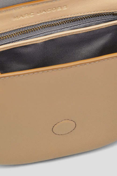 Детали: Женская бежевая кожаная сумка кросс-боди The Covered J Marc Small от Marc Jacobs (Марк Джейкобс). Модель из гладкой кожи, логотип спереди, золотистая фурнитура, брендированный плечевой ремень, застежка на магнит, одно отделение, один внутренний карман. Размеры: 20 x 7 х 16 см