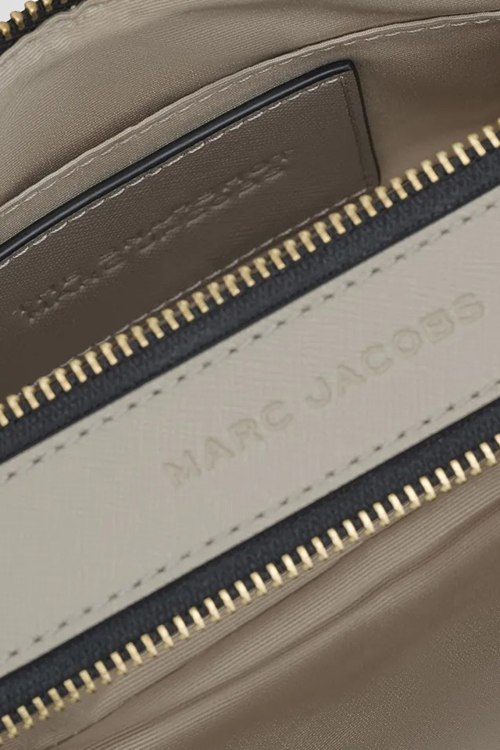 Детали: Женская бежевая сумка кросс-боди The Snapshot из натуральной кожи от Marc Jacobs (Марк Джейкобс). Два отделения, застежка на молнию, комбинация цветов, металлическая фурнитура, съемный плечевой ремень из текстиля, металлический логотип бренда. Измерения:18 x 6 x 11 см; длина регулируемого плечевого ремня 21-144 см