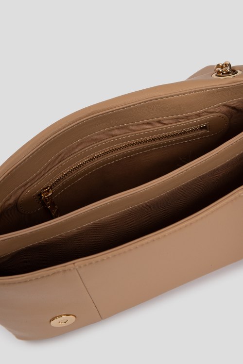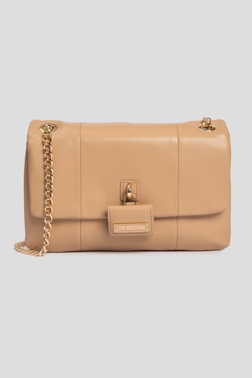 Детали: Женская бежевая сумка кросс-боди из экокожи от Love Moschino (Лав Москино). Два отделения, застежка с клапаном на мангнит, два внутренних кармана, плечевой ремень-цепочка. Измерения: высота: 17 см, ширина: 26 см, высота ручек: 32 см, ширина по дну: 5 см