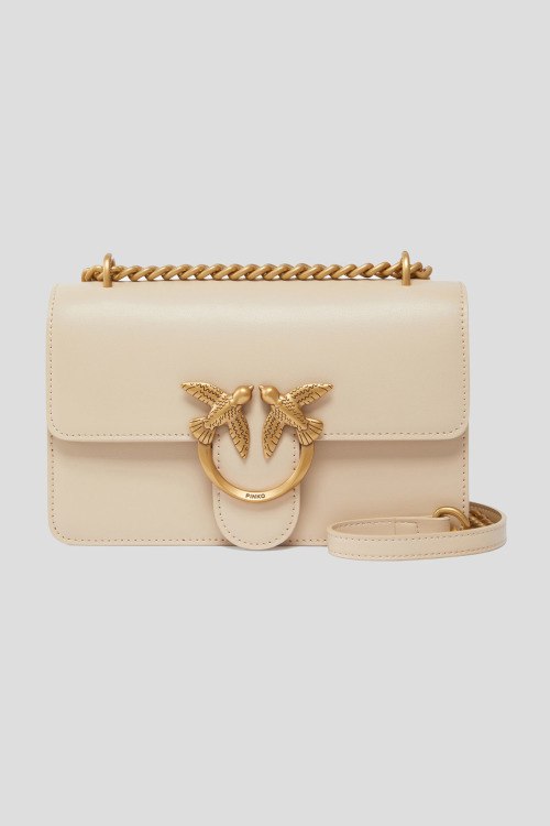 Детали: Женская кремовая сумка кросс-боди из экокожи Mini Love Bag One Simply от Pinko (Пинко). Модель из гладкой кожи, логотип Love Birds, золотистая фурнитура, застежка на магнит, одно отделение, цепочка на плечо. Размеры: высота: 13 см, ширина: 6 см, длина: 21 см