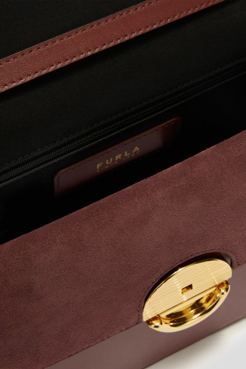 Детали: Женская бордовая кожаная сумка кросс-боди Sfera от Furla (Фурла). Модель из гладкой кожи, золотистая фурнитура, застежка на защелку, одно отделение, регулируемый плечевой ремень. Размер: 24 x 15 x 7,5 см