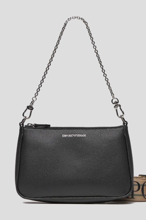 Детали: Женская черная сумка кросс-боди из экокожи от Emporio Armani (Эмпорио Армани). Одно отделение, застежка на молнию, съемная ручка-цепочка на плечо, текстильный ремешок с регулировкой, логотип бренда. Размер: 22 x 14 x 4 см