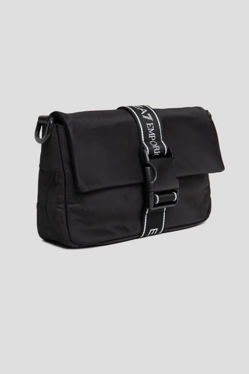Детали: Женская черная сумка кросс-боди от EA7 Emporio Armani (ЕА7 Эмпорио Армани). Одно отделение, застежка с клапаном на фастекс, один внутренний карман, съемный текстильный плечевой ремень. Размер: 23 x 15 x 7 см
