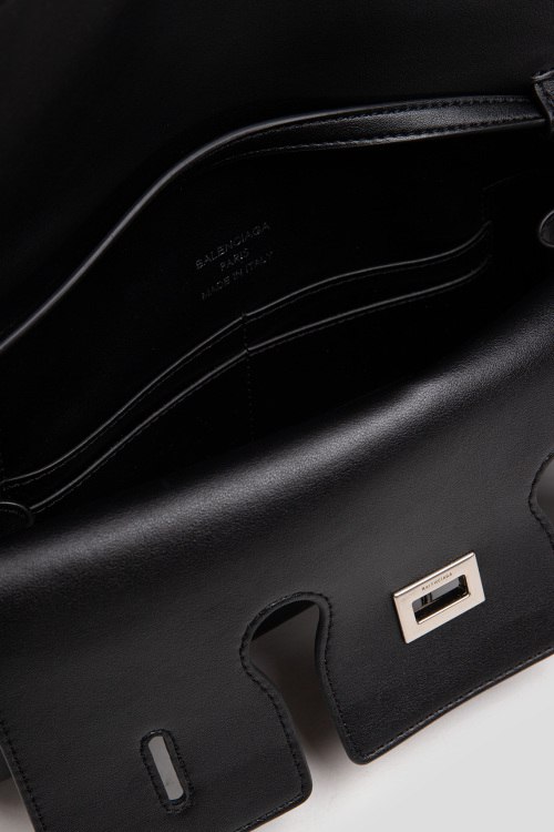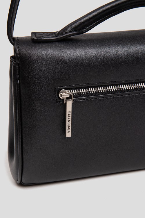 Детали: Женская черная кожаная сумка кросс-боди от Balenciaga (Баленсиага). Модель из гладкой кожи, серебристая фурнитура, верхняя ручка, регулируемый плечевой ремень, карман на молнии сзади, одно отделение. Размеры: высота - 14 см, ширина - 26 см, глубина - 6,5 см