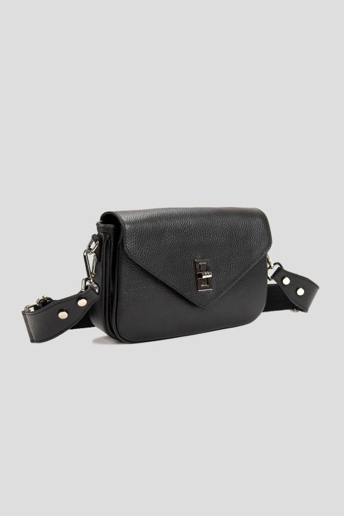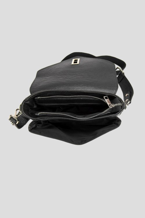 Детали: Женская черная сумка кросс-боди из натуральной кожи от Firenze Italy (Фирензе Итали). Одно отделение на молнии, внешний карман, дизайн с клапаном, металлическая фурнитура, регулируемый плечевой ремень. Размер: 20 x 16 x 7 см