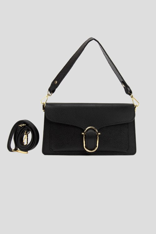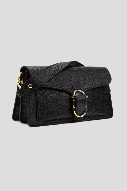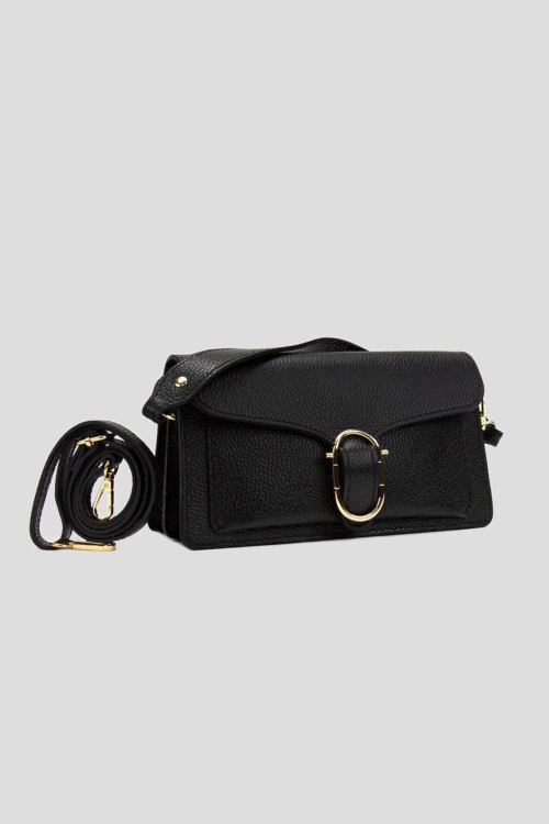 Детали: Женская черная сумка кросс-боди из натуральной кожи от Firenze Italy (Фирензе Итали). Одно основное отделение, дизайн с клапаном на магнитной кнопке, два внутренних кармана, карман-перегородка на молнии, тонкий плечевой ремень длиной 60-120 см, съемная ручка размером 47 см, текстильная подкладка, золотистая фурнитура. Размер: 25 x 14 x 8 см