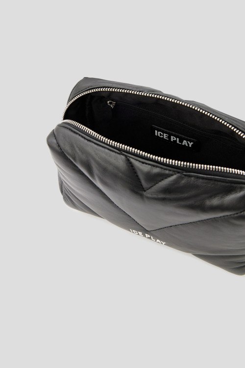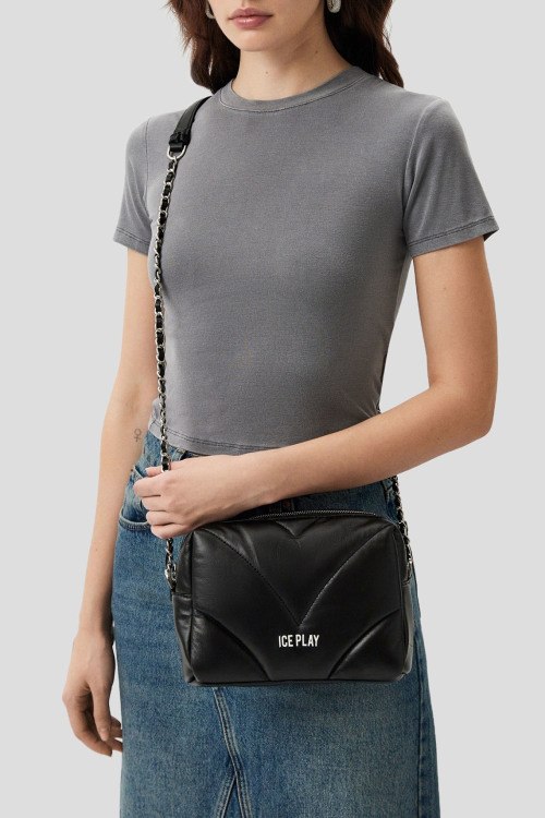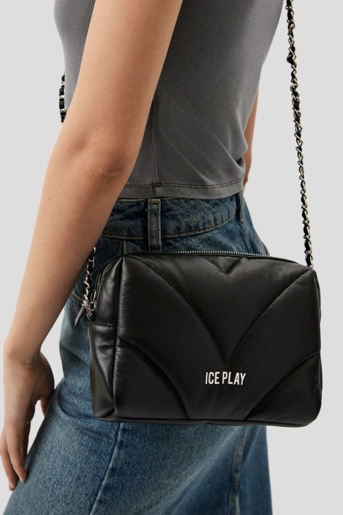 Детали: Женская черная сумка кросс-боди из экокожи от Ice Play (Айс Плей). Стеганый дизайн, принт с логотипом, застежка-молния, одно отделение, плечевой ремень с цепочкой. Размеры: высота 16 см, ширина 22 см, ширина дна 6 см, длина плечевого ремня 125 см
