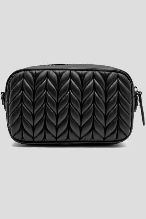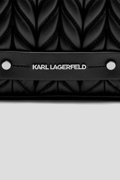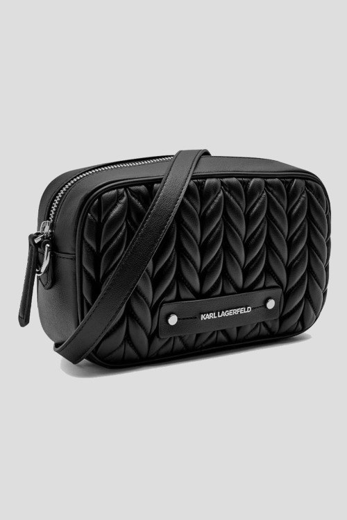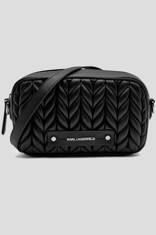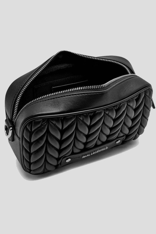 Детали: Женская черная сумка кросс-боди из экокожи K/Weave от Karl Lagerfeld (Карл Лагерфельд). Модель из гладкой кожи, стеганый дизайн, нашивка с логотипом, серебристая фурнитура, застежка-молния, одно отделение, регулируемый плечевой ремень. Размеры: 24 х 12 х 6 см