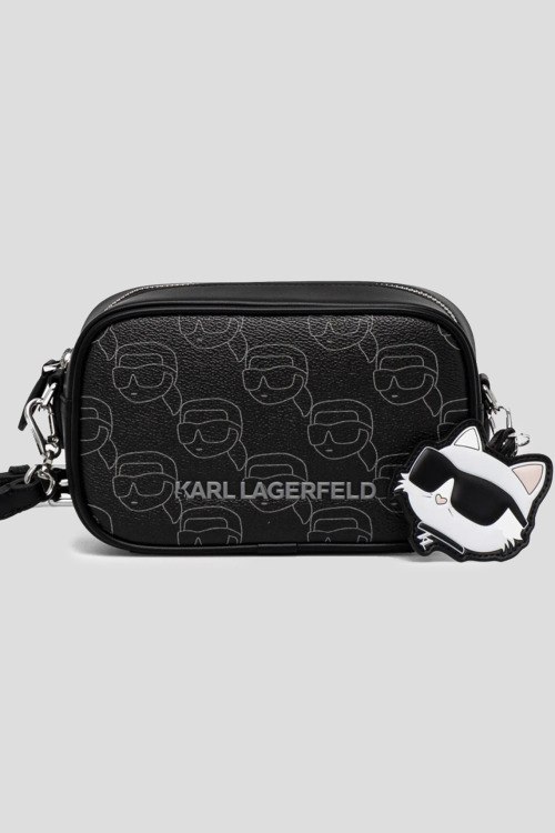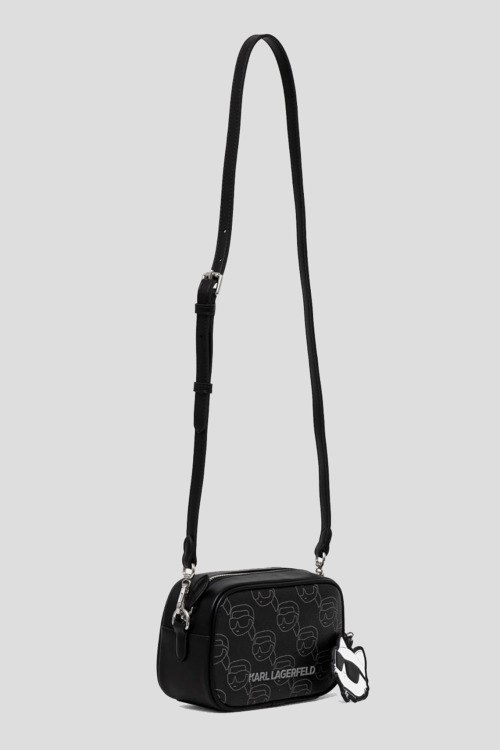 Детали: Женская черная сумка кросс-боди из экокожи от Karl Lagerfeld (Карл Лагерфельд). Одно отделение, застежка на молнию, брендированный принт, съемный плечевой ремень с регулировкой, брендированный брелок. Измерения: 20 x 12 x 7 см