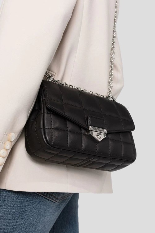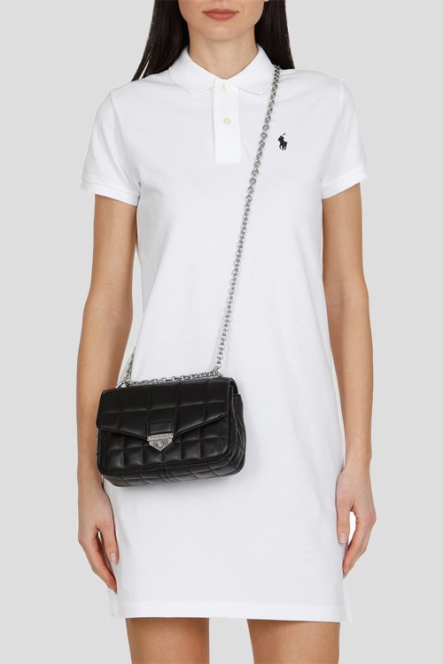 Детали: Женская черная сумка кросс-боди Sm Chain из натуральной кожи от Michael Kors (Майкл Корс). Текстильная подкладка, стеганый дизайн, застежка с клапаном на защелку, несъемный ремень с цепочкой 30/55 см, серебристая фурнитура, два отделения, два кармана на молнии, два открытых кармана. Размер: 20Х12Х6 см. Комплектация: транспортный Пэ Пакет, Пыльник, фирменная бирка