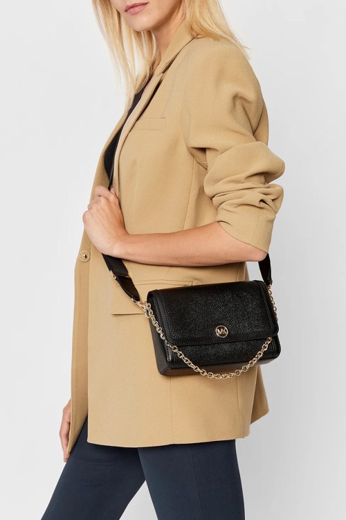 Детали: Женская черная сумка кросс-боди Sm Cnv Chn Pchte Xbody из натуральной кожи от Michael Kors (Майкл Корс). Одно отделение, застежка с клапаном на магнит, съемный регулируемый ремень, один открытый карман, три слота для кредитных карт, Размер: 20х14,5х6,5 см, высота ручки 15 см, высота плечевого ремня 40-65 см. Комплектация: транспортный Пэ пакет, пыльник