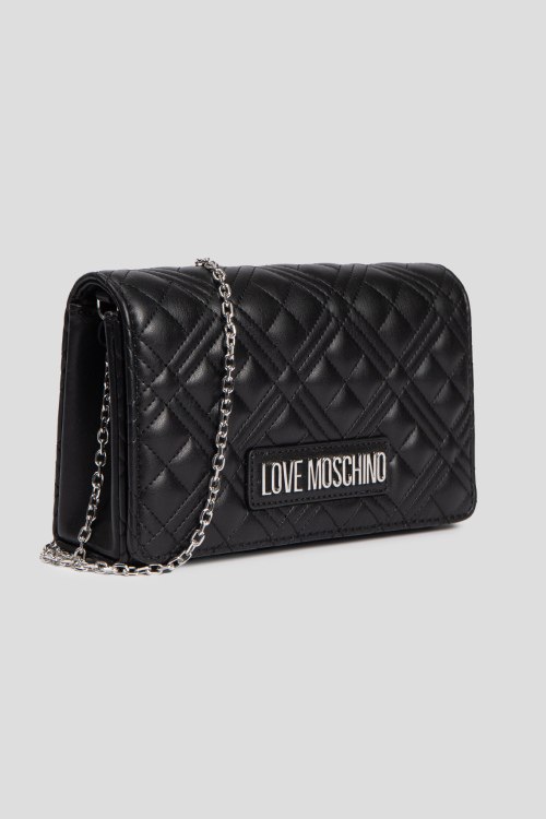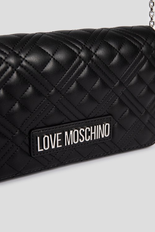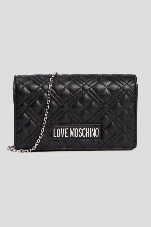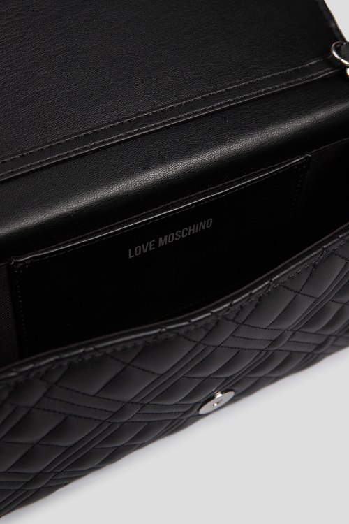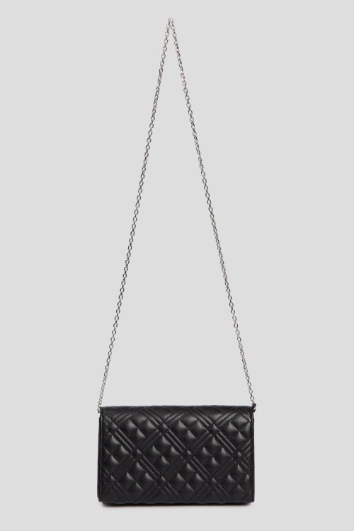 Детали: Женская черная сумка кросс-боди из экокожи от Love Moschino (Лав Москино). Стеганый дизайн, одно отделение, застежка с клапаном на магнит, внутренний карман, патч-лого, плечевой ремень-цепочка. Измерения: длина ремня: 117 см, глубина: 6 см, высота: 12 см, ширина у основания: 22,5 см.