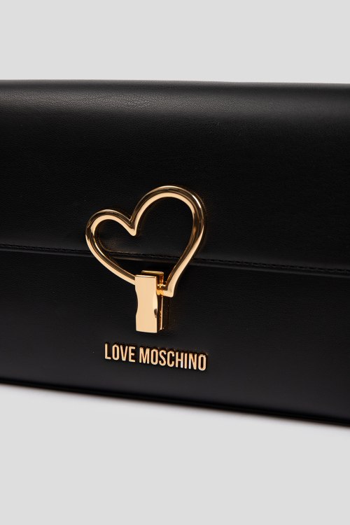 Детали: Женская черная сумка кросс-боди из экокожи от Love Moschino (Лав Москино). Одно отделение, дизайн с клапаном, металлическая фурнитура золотистого цвета, логотип бренда, плечевой ремень-цепочка. Измерения:длина ремня: 114 см, глубина: 5,5 см, высота: 14 см, ширина у основания: 22 см.
