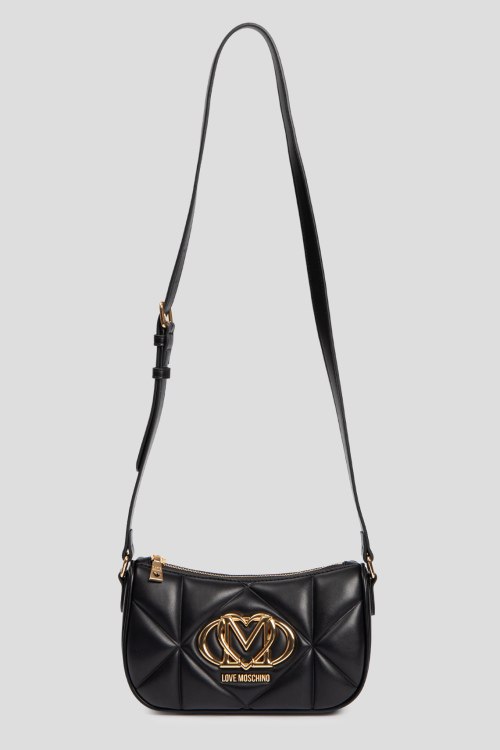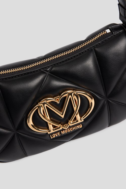 Детали: Женская черная сумка кросс-боди из экокожи от Love Moschino (Лав Москино). Стеганый дизайн, застежка ан молнию, металлический логотип бренда, регулируемый плечевой ремень. Размеры: 22 x 15 x 6 cм