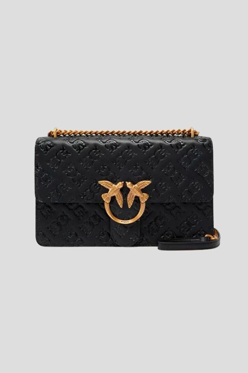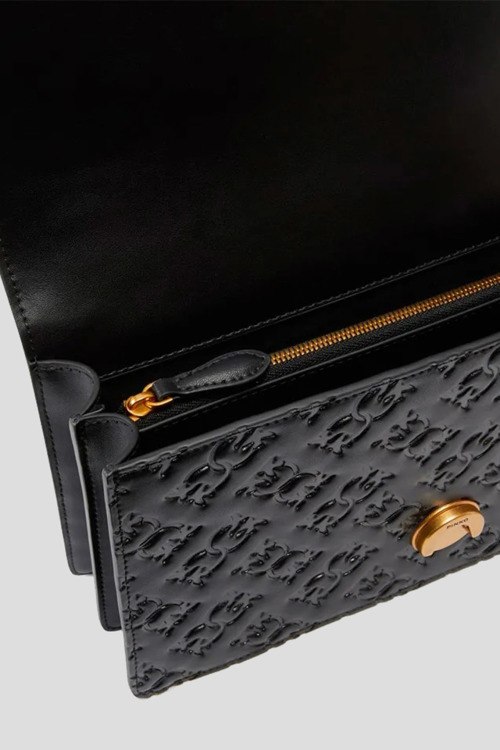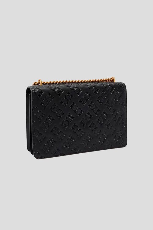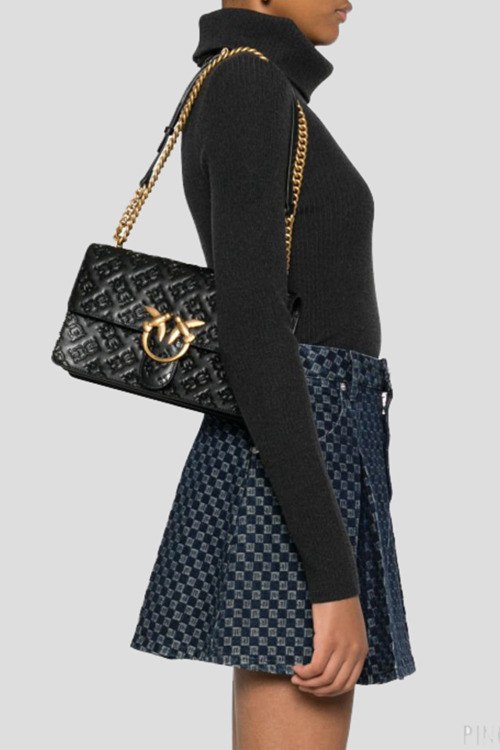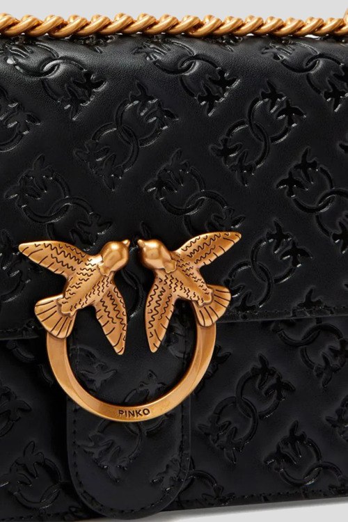 Детали: Женская черная кожаная сумка кросс-боди Love Bag Mini от Pinko (Пинко). Модель из гладкой кожи, тиснение с монограммой по всей поверхности, логотип Love Birds, золотистая фурнитура, застежка на магнит, одно отделение, цепочка на плечо. Размеры: длина - 27 см, высота - 8 см, ширина - 8 см, максимальная длина цепочки - 116 см