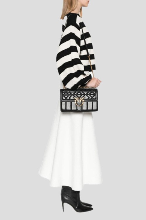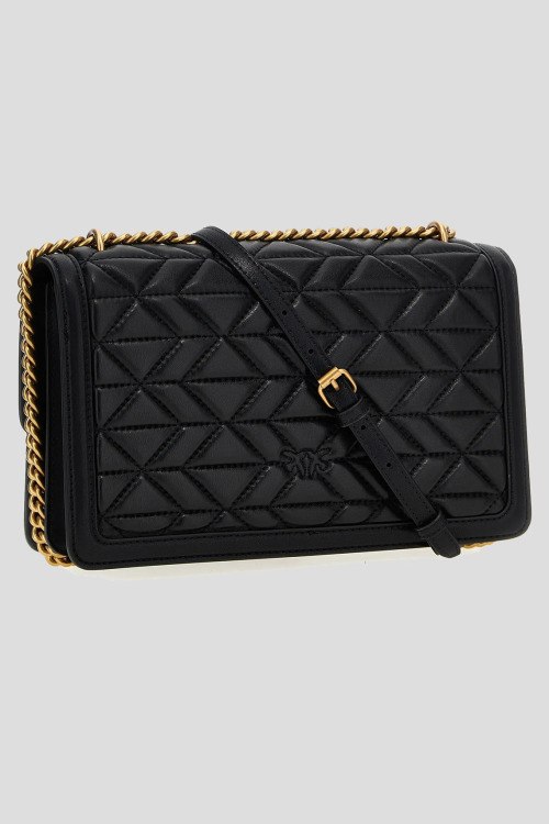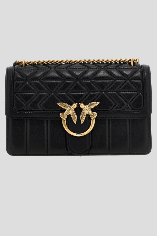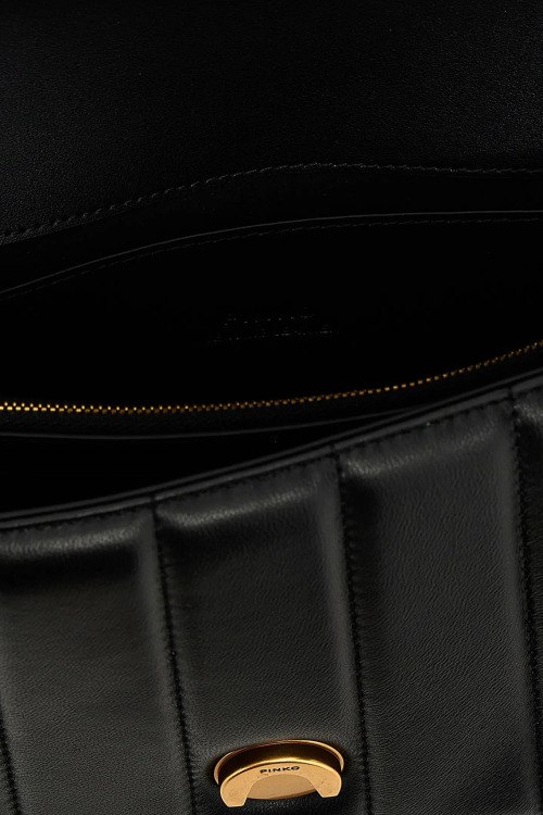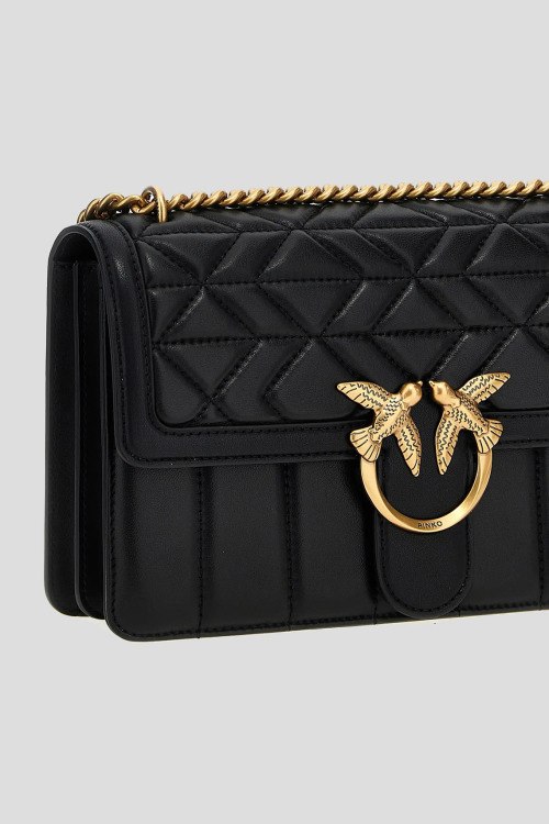 Детали: Женская черная кожаная сумка кросс-боди Love Bag от Pinko (Пинко). Модель из гладкой кожи, стеганый дизайн, логотип Love Birds, золотистая фурнитура, застежка на магнит, одно отделение, цепочка на плечо. Размеры: ширина - 27 см, высота - 17 см, глубина - 8 см, максимальная длина плечевой цепочки 116 см