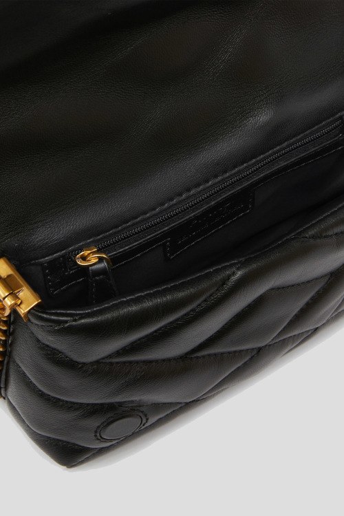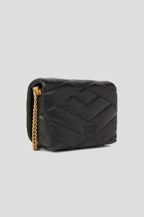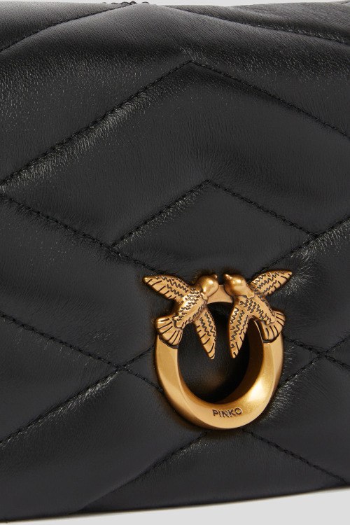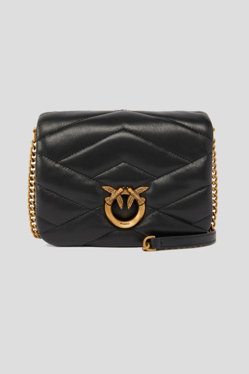 Детали: Женская черная кожаная сумка кросс-боди Baby Love Bag Puff от Pinko (Пинко). Модель из гладкой кожи, стеганый дизайн, логотип Love Birds, золотистая фурнитура, застежка на магнит, одно отделение, цепочка на плечо. Размеры: высота: 12 см, ширина: 7 см, длина: 18 см