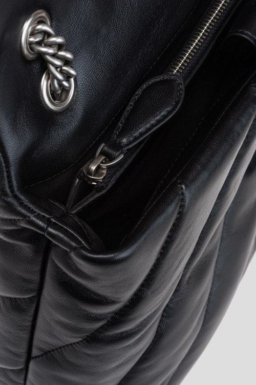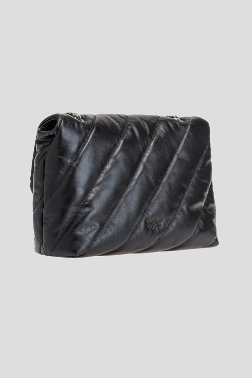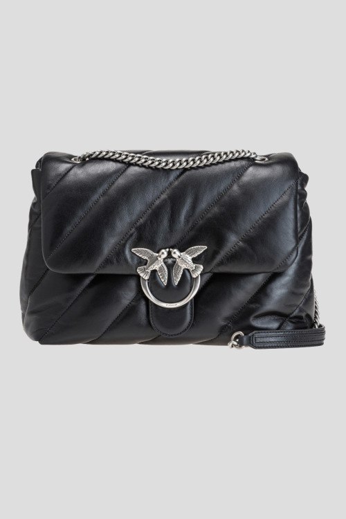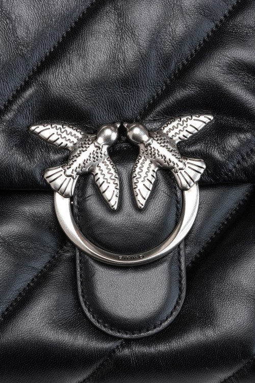Детали: Женская черная кожаная сумка кросс-боди Big Love Bag Puff Maxi от Pinko (Пинко). Модель из гладкой кожи, стеганый дизайн, логотип Love Birds, серебристая фурнитура, застежка на магнит, одно отделение, цепочка на плечо. Размеры: 32 x 11 x 25 см
