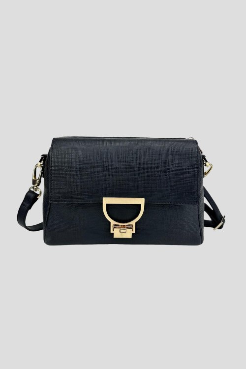 Детали: Женская черная сумка кросс-боди из натуральной кожи от Tavinchi (Тавинчи). Одно отделение, застежка на молнию, отдел с клапаном, внутренние карманы, золотистая фурнитура, регулируемый плечевой ремень. Размер: 25 x 6 x 17 см.