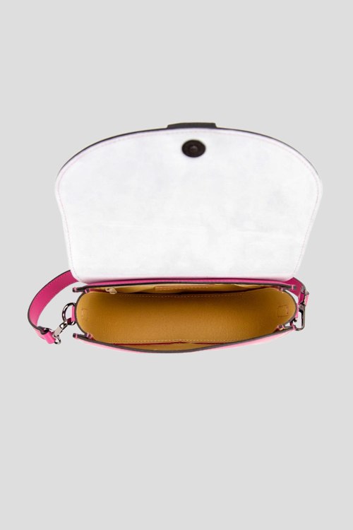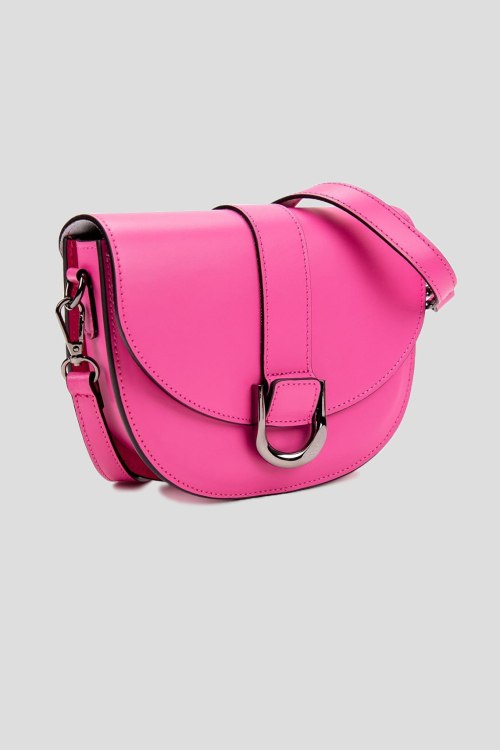 Детали: Женская кожаная сумка кросс-боди цвета фуксии от Firenze Italy (Фирензе Итали). Модель небольших размеров, каркасная, хорошо держит форму, кожа плотная. Имеет одно основное отделение, с закрытием в виде клапана на защелке. Внутри также есть небольшой кармашек для мелких предметов. Наплечный ремешок кожаный, регулируется по длине, крепиться к сумке с помощью карабинов. Так же есть второй съёмный ремень, более широкий и короткий. Размеры: 24 x 19 x 7 см