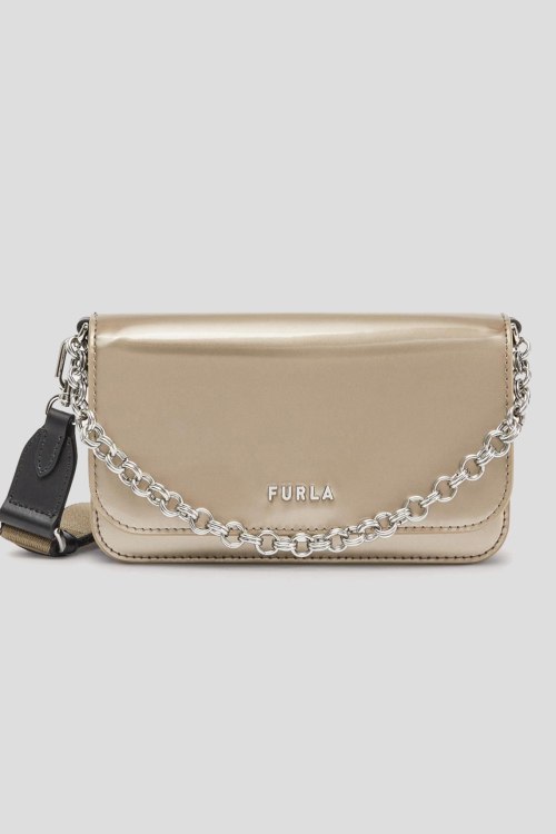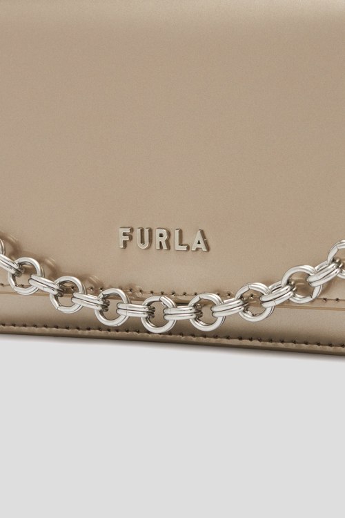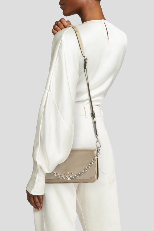 Детали: Женская бронзовая кожаная сумка кросс-боди Splendida от Furla (Фурла). Закрывается клапаном на магнит, регулируемый съемный плечевой ремень, 3 отделения, один открытый карман, один внешний карман. Размер: 20 x 12 x 6 см. Высота ручки/ремня: 10/30-65 см