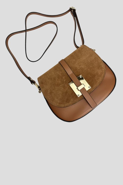 Детали: Женская коричневая сумка кросс-боди из натуральной кожи от Firenze Italy (Фирензе Итали). Комбинация материалов, дизайн с клапаном, одно отделение, застежка на молнию, металлическая фурнитура, съемный плечевой ремень. Измерения:22 x 19 x 6 см