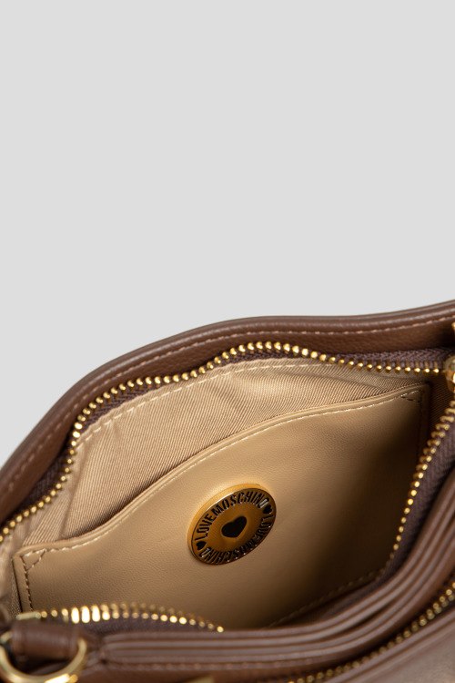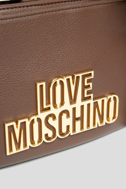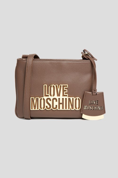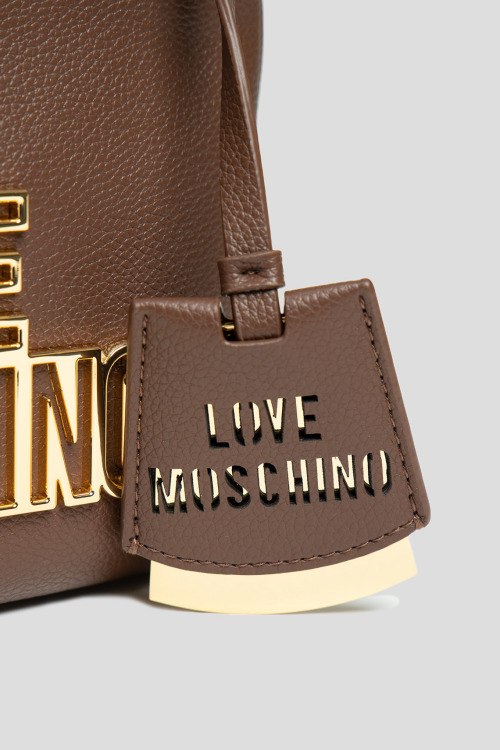 Детали: Женская коричневая сумка кросс-боди из экокожи от Love Moschino (Лав Москино). Металлический логотип, подвеска с логотипом, золотистая фурнитура, регулируемый плечевой ремень, застежка-молния, два отделения. Размеры: 20,5 х 15 х 4,5 см